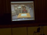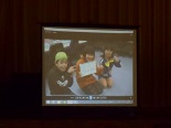 1年生の音読朝会に続いて、今日は、児童会の子供たちが「挨拶運動」について振り返った映像を見せてくれました。