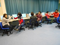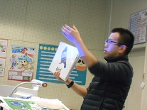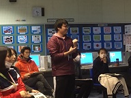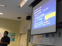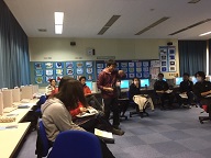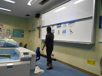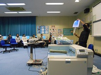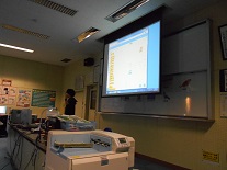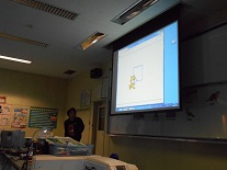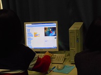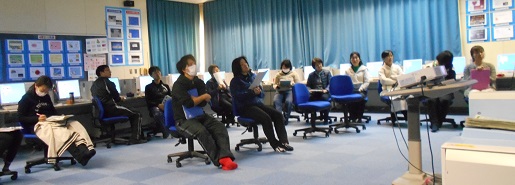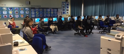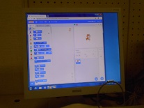 続いて、プログラミング教育についての研修に参加した職員が指導者となり、「プログラミング教育」についての話を聞きました。また、実際に、プログラミングソフト「Scratch」を使って、コンピュータ上で操作をしながら学びました。