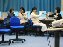 初めは、小学校教員英語指導力養成講座に参加した職員が指導者となって、みんなで話したり、2人組で取り組んだり、ゲーム感覚で行ったりして、多くのことを学びました。