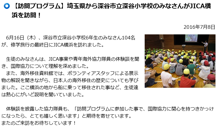 JICAさんのホームページに深谷小登場!