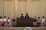 14日(火)に今年度最初の児童集会が開かれました。児童会役員の進行のもと、4年生以上の各クラスの代表委員が決意を述べました。どのクラスの代表委員も、学校やクラスのために自分がやるべきことを堂々と宣言できました。初めて代表委員を経験する4年生も立派な態度で、とても頼もしかったです。また、会を進行した児童会役員の働きや、集会に参加した全校児童の態度も素晴らしかったです。