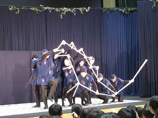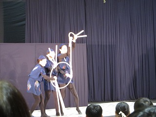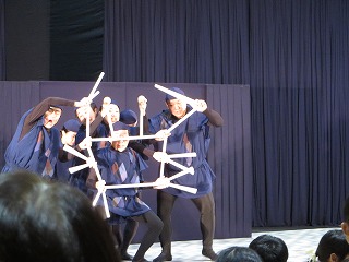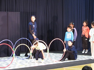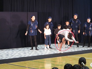 今年度の芸術鑑賞会は文化庁「学校における文化芸術鑑賞・体験推進事業」で「劇団あとむ」の皆さんをお招きして、『あとむの時間はアンデルセンー遊versionー』を鑑賞しました。棒や輪、ボールを使って表現する「アニメイト」では児童も体験することができ、児童だけでなく教員もとても楽しい時間を過ごすことができました。