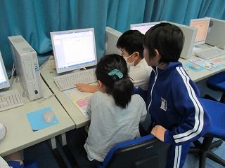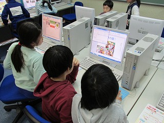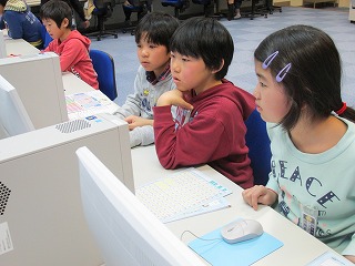 1年生から6年生までで、コンピュータを使った作品作りを進めています。3年生は中山道のお店調べで分かったことを写真や文でまとめています。使うソフトはパワーポイント!大人が使うソフトを3年生でも使ってしまいます。写真の挿入の仕方や文字の加工の仕方を教えると、友達同士で教え合いながら使えました。ローマ字入力に苦戦しながらも、少しずつ完成に近づいてきています。
