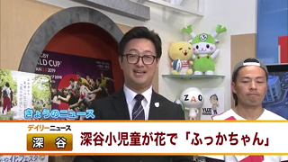 26日(金)に、深谷花フェスタに飾るふっかちゃんの「巨大花絵づくり」に4年生が行ってきました。その時の様子をJ:COMさんが取材にきて、夕方放映がありました。