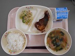 今日の給食はごはん・牛乳・サバのネギみそ焼き・たくあんサラダ・白玉雑煮です。