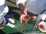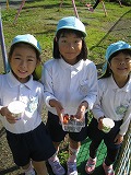 青空に吸い込まれるようにブランコを思い切りこいでいる子、「見て見て」と園庭の木々に実ったいろいろな実を見せてくれる子(「赤い実はアメリカハナミズキの実だよ」と教えてもらいました絵文字:笑顔)・・・。