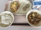 今日の献立は飯・牛乳・生揚げのチャオサイ・にくしゅうまい・中華サラダでした。