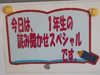 昨日、2~4校時に、1年生3クラスで「読み聞かせスペシャル」がありました。