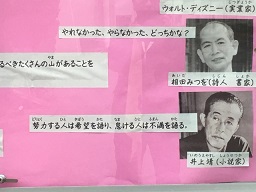 松下幸之助さん、稲盛和夫さん、 ウォルト・ディズニーさん等からの言葉が掲載されています。保護者の皆様、地域の皆様もどうぞ、ご覧ください。