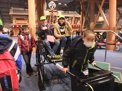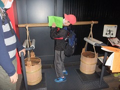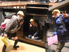 江戸東京博物館では、展示資料を注意深く見るだけでなく、江戸時代の火消しの「纒(まとい)」を持ってみたり、人力車に乗ってみたり、昔の家屋に実際にあがってみたりと、積極的に体験して学習することができました。