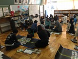 PTA研修委員会の方に指導していただき、大会参加児童がかるたの練習をしました。