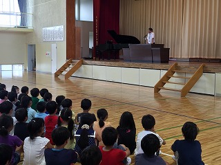 深小っ子全員が真剣に話を聞きながら自分の心と対話していました。