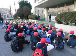朝、いつも行っている旗の掲揚の仕事をしっかりし、元気に挨拶して出発していきました。