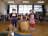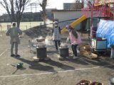 前の日から、餅米を水につけ、臼や杵を水に浸し、せいろなどを洗って・・・、子供たちの笑顔のために、PTA役員の方々や地域のお餅つきのお師匠さんの方々がせっせと準備を進めてくださいました絵文字:冷や汗