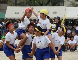 1年生「気合いだー!玉入れ!プリティーダンス♪」     2年生「あーらよ。出前一丁!」         3年生「走れ!デカパン!」