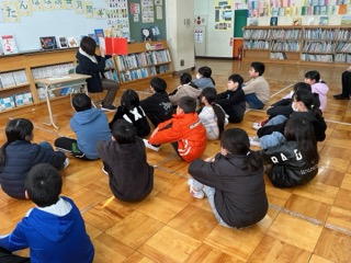 本日、2~4時間目に4年生のよみきかせスペシャルがありました。それぞれのクラスの学級当番の保護者の方や読み聞かせボランティアの保護者、学校司書の佐藤真由美先生に絵本の読み聞かせをしていただきました。