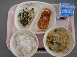 今日の給食は、ごはん・牛乳・チーズダッカルビ・ホウレンソウともやしのナムル・コーン入り華風スープです。