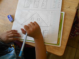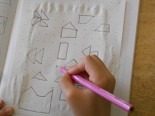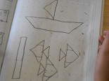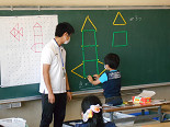 2年生は、算数で1年生の最後の「形づくり」と、2年生で学習する「三角形、四角形」の勉強をしていました。