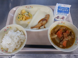 フライ・冬至のかぼちゃサラダ・牛乳です。