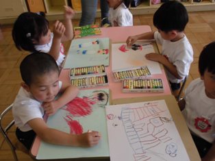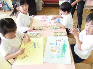 うさぎ組は、初めての経験画で「遠足に行ってきた絵」を描きました。