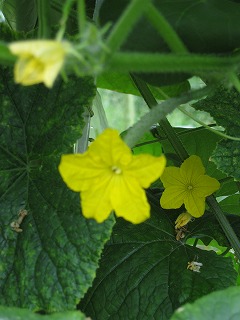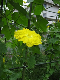 ベランダで緑のカーテンとなりつつあるゴーヤも含めて、夏の野菜は黄色い花が多いようですね絵文字:笑顔