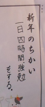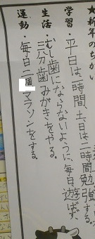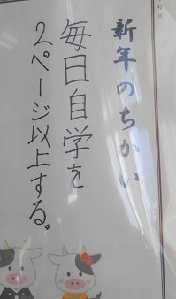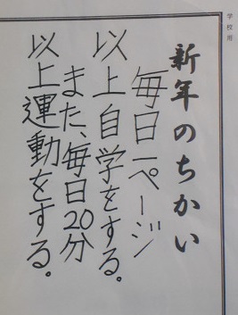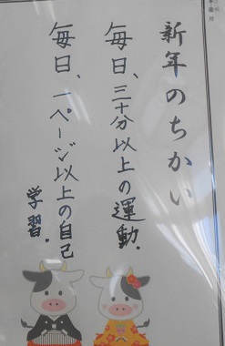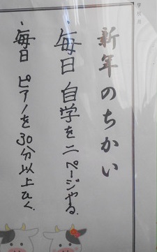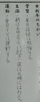 そんな観点で各教室に掲示されている『新年の誓い』を見てきました。とっても具体的に書かれているものがたくさんありました。いくつか紹介いたします。(今回は、6年生・3年生・1年生です)