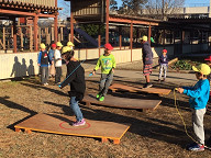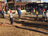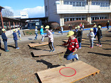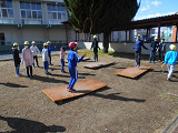 各家庭から集まったアルミ缶回収の収入で作ったジャンピングボード。