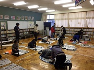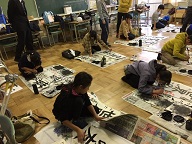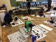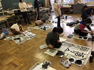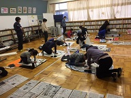 本日が書きぞめの選手練習の2日目。各学年の練習しているところを回りましたが、どこも真剣そのもの。シーンという静寂の中で子供たちが一生懸命筆を動かしていました。