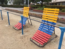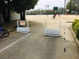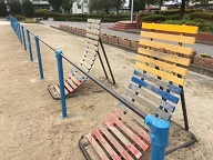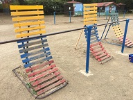 本日、アスレチックの西側の鉄棒、逆上がり補助板等にペンキを塗りました。