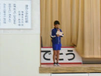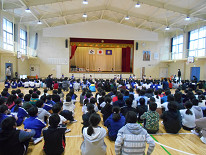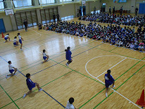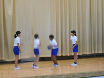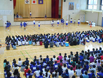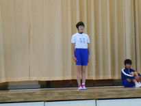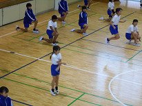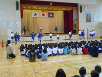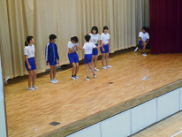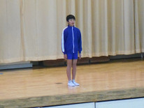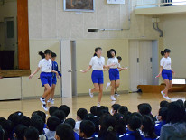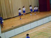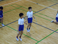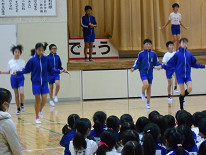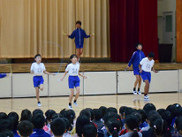 今朝、体育集会がありました。縄跳びカードに掲載してある跳び方、それに、別の跳び方を体育委員会の子供たちが教えてくれました。