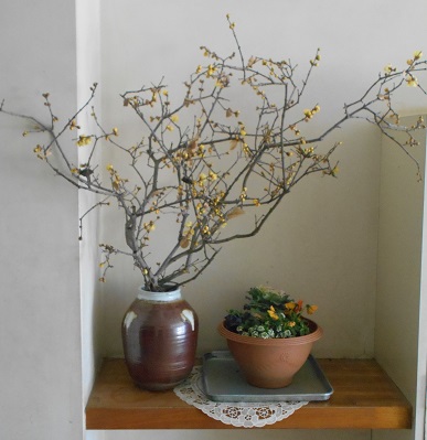 玄関に蝋梅(ろうばい)
