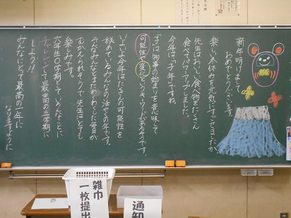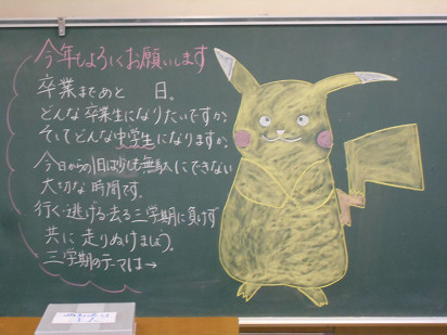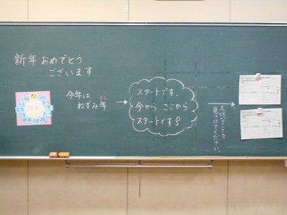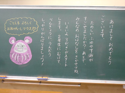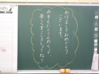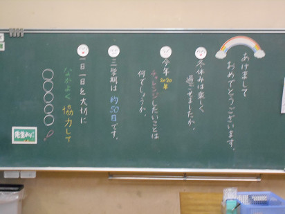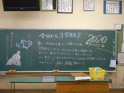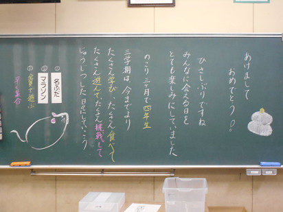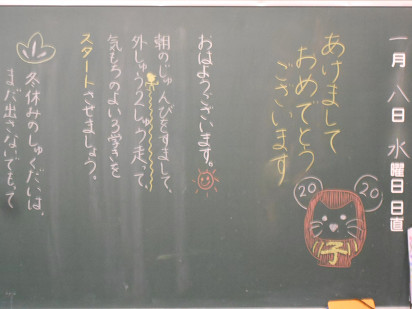 子供たちを迎える各クラスの黒板に、担任から子供たちへのメッセージが書かれていましたので、紹介いたします。
