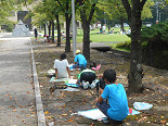 6年生は、深谷城址公園で写生会を行いました。昨年度までは、深谷駅を描いていましたが、今年度は深谷駅が工事のため変更いたしました。大変暑い中でしたが、みんな真剣に絵を描いていました。