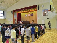 -人権朝会-11月1日、今月の全校朝会は、11月7日から18日までの「人権旬間」に向けての意識付けをするため「人権朝会」としました。