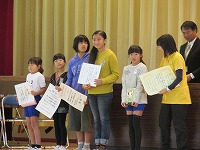 続いて表彰を行いました。深谷小学校の子供たちが、いろいろなところで力を発揮してくれるということは嬉しいことです。