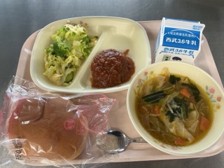 ふっキャロドレッシング・わんたんスープ・牛乳です。
