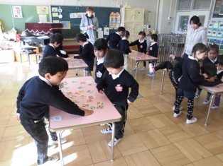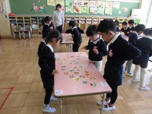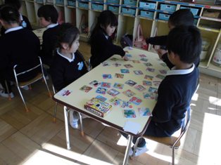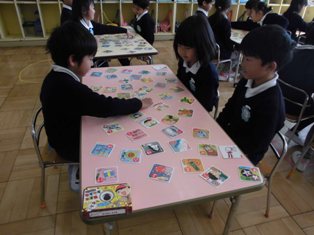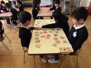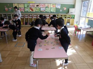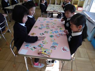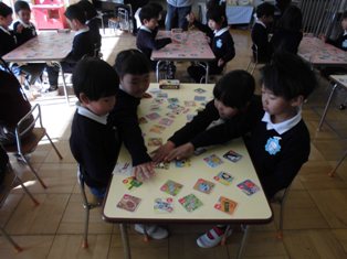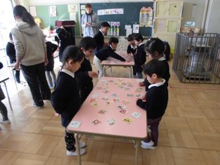 お正月遊びで、各クラスでカルタ取り大会をしていました。