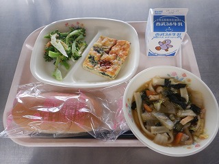 今日の献立は、黒糖きな粉揚げパン・彩の国サラダ・