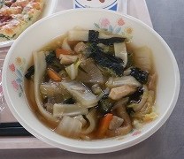 ふっかちゃん野菜のごまごまサラダ・煮ぼうとう・牛乳です。