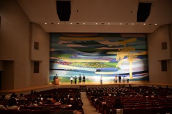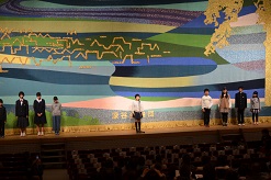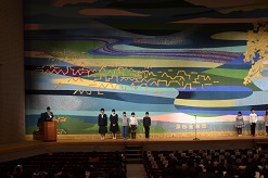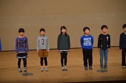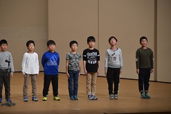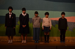 続いて、「子どもの暗唱を楽しむ会」があり、本校から3年生20名が出場しました。6番目に登場し、「雨ニモマケズ」と「夢七訓」を工夫を凝らして自信をもって会場に響く声で発表してくれました。2つは、毎月の暗唱で覚えたものですが、出場が決まってから何度も練習し、今日も午前中に集まって練習をして本番に備えてくれました。よく頑張りました。ご家庭の皆様にも送り迎えでお世話になりました。子供たちにとっては、よい記念になったと思います。