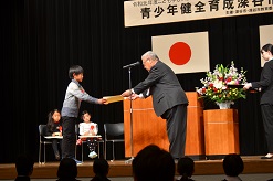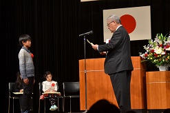 その後、「家庭の日」ポスターコンクールの表彰がありました。本校の3年生が最優秀賞になりました。おめでとうございました。素晴らしいポスターでした。
