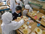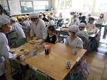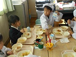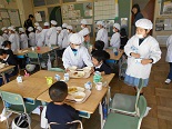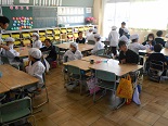 1年生は、すっかりお兄さんお姉さんになっており、給食を丁寧に配り、やさしく教えていました。