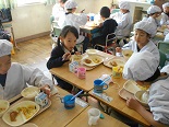 本校で給食を食べる