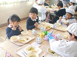 幼稚園の子供たちが本校で給食