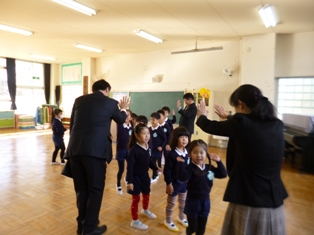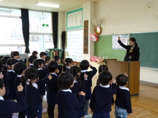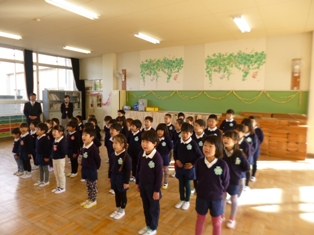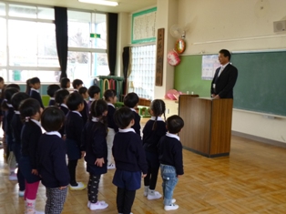 体以上に、お兄さん・お姉さんらしくなっている5歳児たちは、始業式の最中もほとんど体を動かさず、しっかりと園長先生や小学校の田中先生のお話を聞くことができました絵文字:良くできました OKそれを見ていた4歳児たちも、一生懸命まねようとしていました。「学ぶ」という言葉は「まねる」という言葉がもとになってできたということを思い出させてくれました。