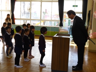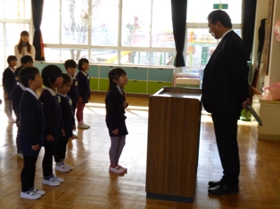 始業式に臨む園児たちの姿勢のよさに、園長先生もびっくり絵文字:笑顔