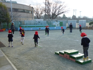 始業式が終わって、子供たちは園庭に出て元気に遊びました。
