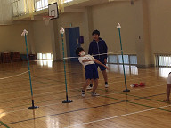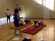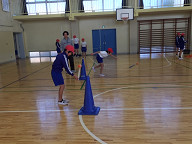 本日、3年目の教諭の体育授業がありました。体力を高める運動ということで、1『体の柔らかさを高める運動』、2『巧みな動きを高める運動』、3『力強い動きを高める運動』を行いました。具体的には、次の6つの運動を行いました。