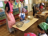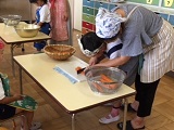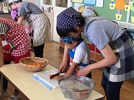包丁を初めて持った子もいましたが、応援に駆けつけてくださった保護者の皆様のおかげで、大きなけがもなく、ジャガイモ、人参、たまねぎを包丁で切ることができました。子供たちには、大変よい体験になったと思います。