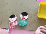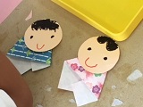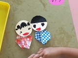 うさぎ組さんは、かわいらしい人形を折り紙で作成していました。